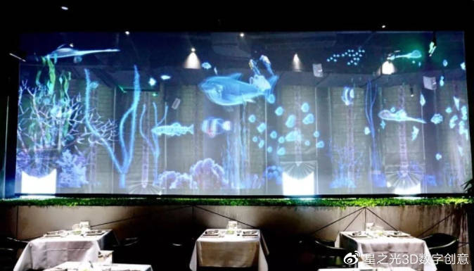 3D全息投影餐廳具有其獨特的魅力,它可以讓你時而置身海洋世界,時而有群花綻放,時而有亭臺樓閣,讓你在真實與虛構(gòu)、時間與空間中品味美食、美酒、音樂人生!