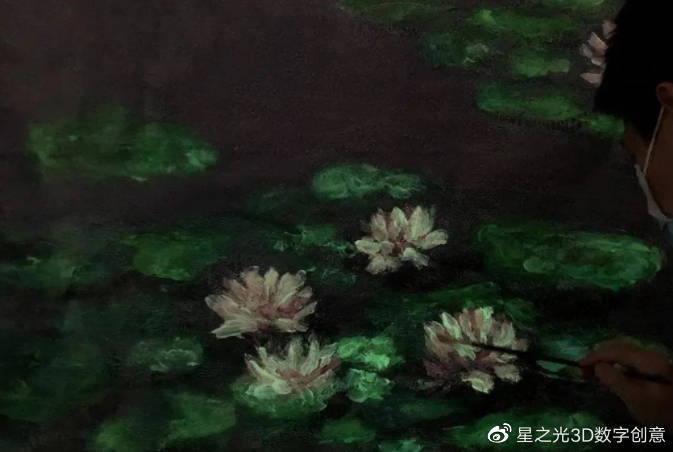 影像、音樂、燈光、氣味,一場視覺、聽覺、嗅覺、觸覺、味覺的全方位的視覺盛宴,讓莫奈的名作在這一刻猶如重獲新生。