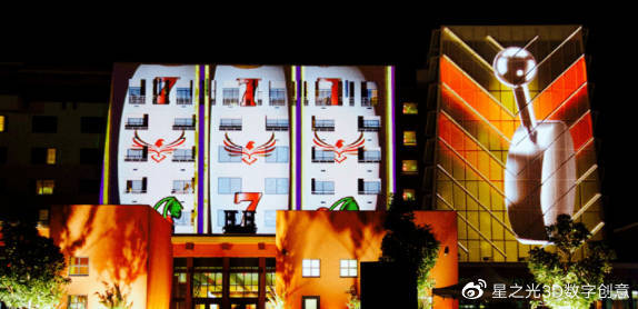 建筑投影技術(shù)是利用建筑物自身的結(jié)構(gòu)特征,采用三維數(shù)字動畫技術(shù),將室外投影技術(shù)投射到建筑物上。不同的場景切換,給人一種視覺上的錯覺,身臨其境,如夢如幻。