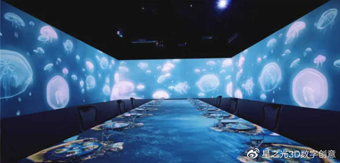 5D全息餐廳與傳統(tǒng)的餐廳空間不同,5D全息投影餐廳采用了交互投影技術,將原本靜止的餐飲空間變成了一個動態(tài)的視覺,讓消費者在不同的場景中,感受到了一種沉浸式的交互式體驗。