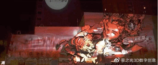 藝術(shù)家與技術(shù)專家共同制作了一幅5層高的巨型壁畫,將一位女性的影像以 Mapping和音響的方式呈現(xiàn)給觀眾。