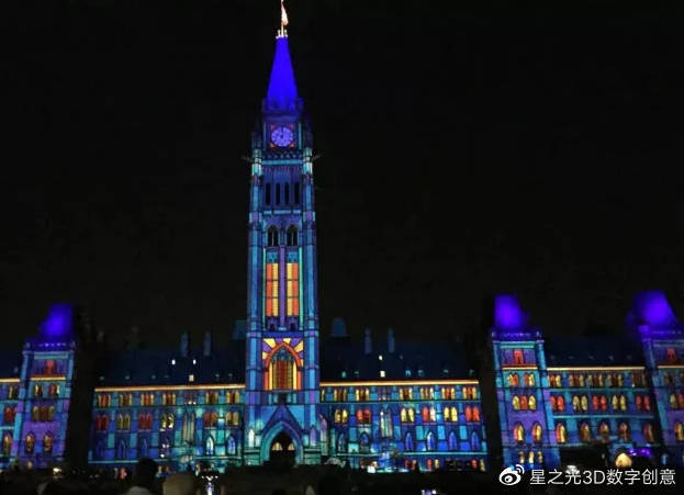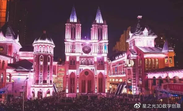 建筑投影利用室外投影技術(shù),利用建筑物的表面作為投射媒介,將3D數(shù)碼動畫與墻壁投影媒體融合,形成三維立體圖像。在燈光的照耀下,墻壁像是“活了起來”,發(fā)生著千姿百態(tài)的變化。