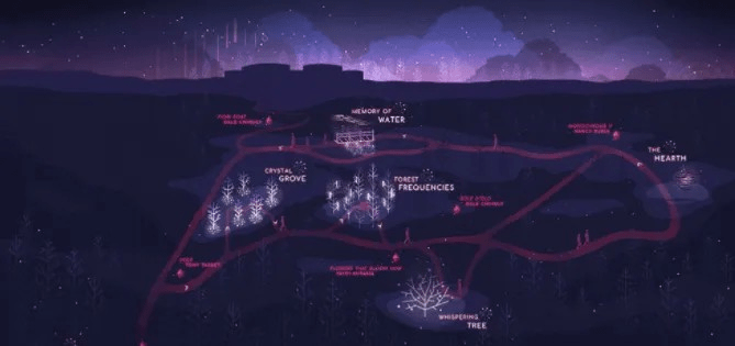 項(xiàng)?以“?晶森林”、“森林的頻率”、“壁爐”、“?語樹”和“?的記憶”這五個(gè)裝置的設(shè)計(jì)給游客創(chuàng)造不同層次的參與度,增加游客的參與互動(dòng)