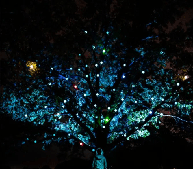 “北部森林之光”是由位于美國博物館森林?徑的燈光藝術(shù)裝置和聲?體驗(yàn)的夜間游園的?系列項(xiàng)?組成的。