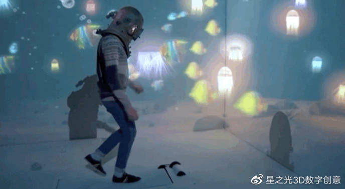 這個工作使用了投射技術(shù),產(chǎn)生了許多很有意思的效果,它確實凸顯了這項技術(shù)的潛力。觀看演員們與燈光互動-下樓梯,伸手觸摸并不存在的門把手,乘地鐵,漫游海底,跳進(jìn)未知的山洞…盡情享受這一旅程!