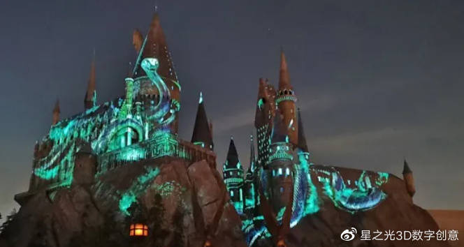 建筑投影運用在旅游景點、游樂園等地建設(shè)室外建筑中,既能吸引游客,又能刺激消費;
